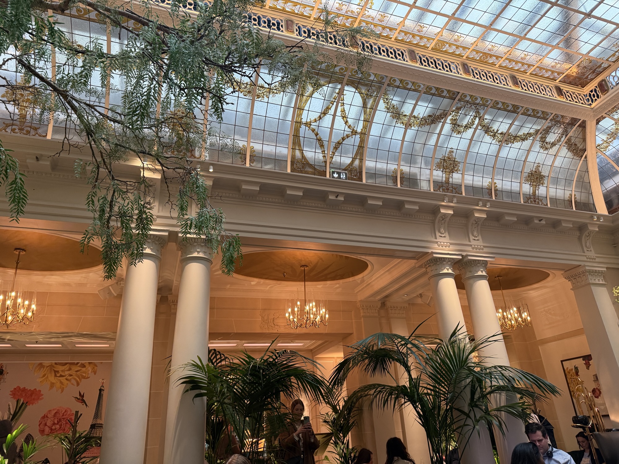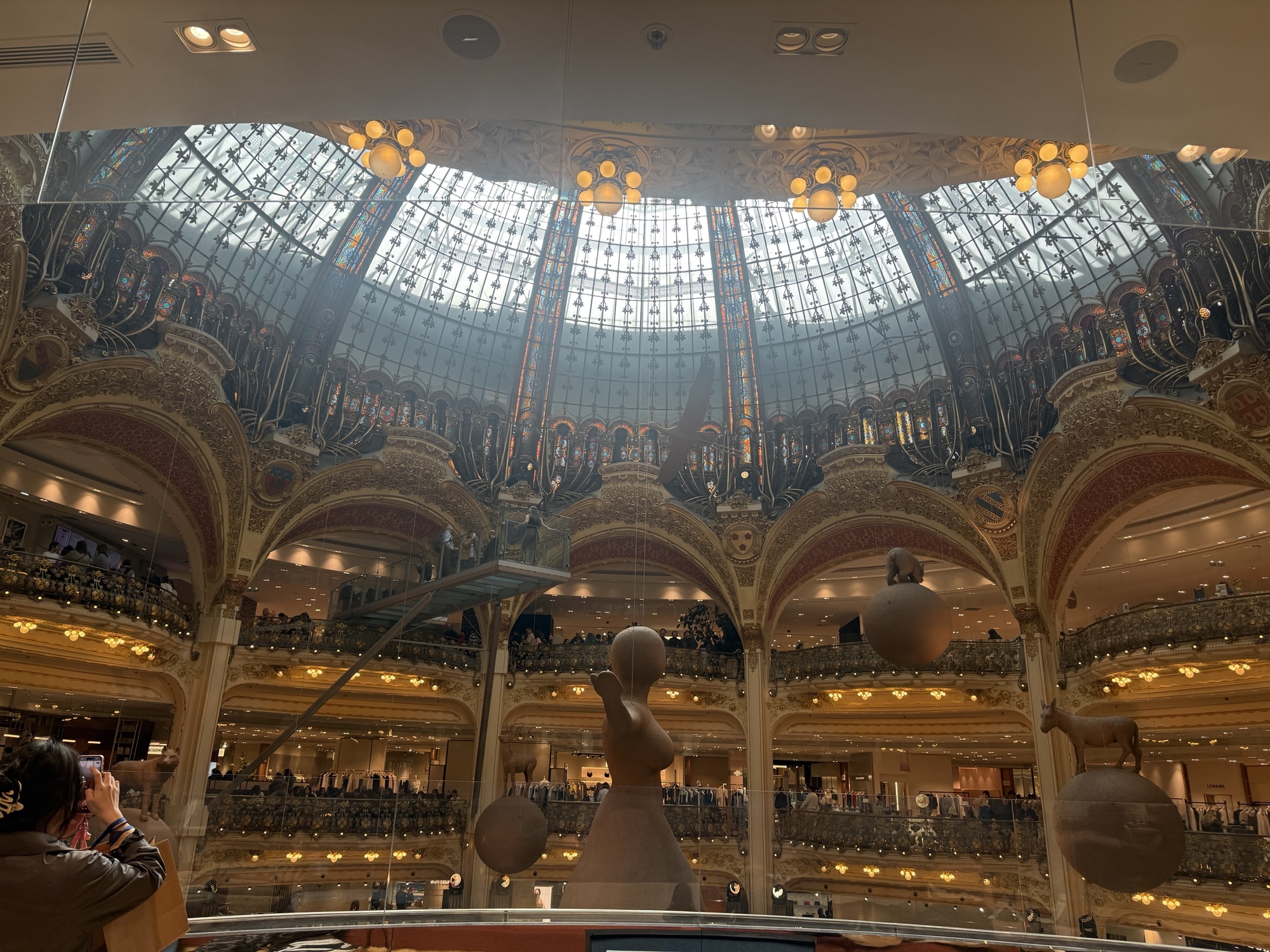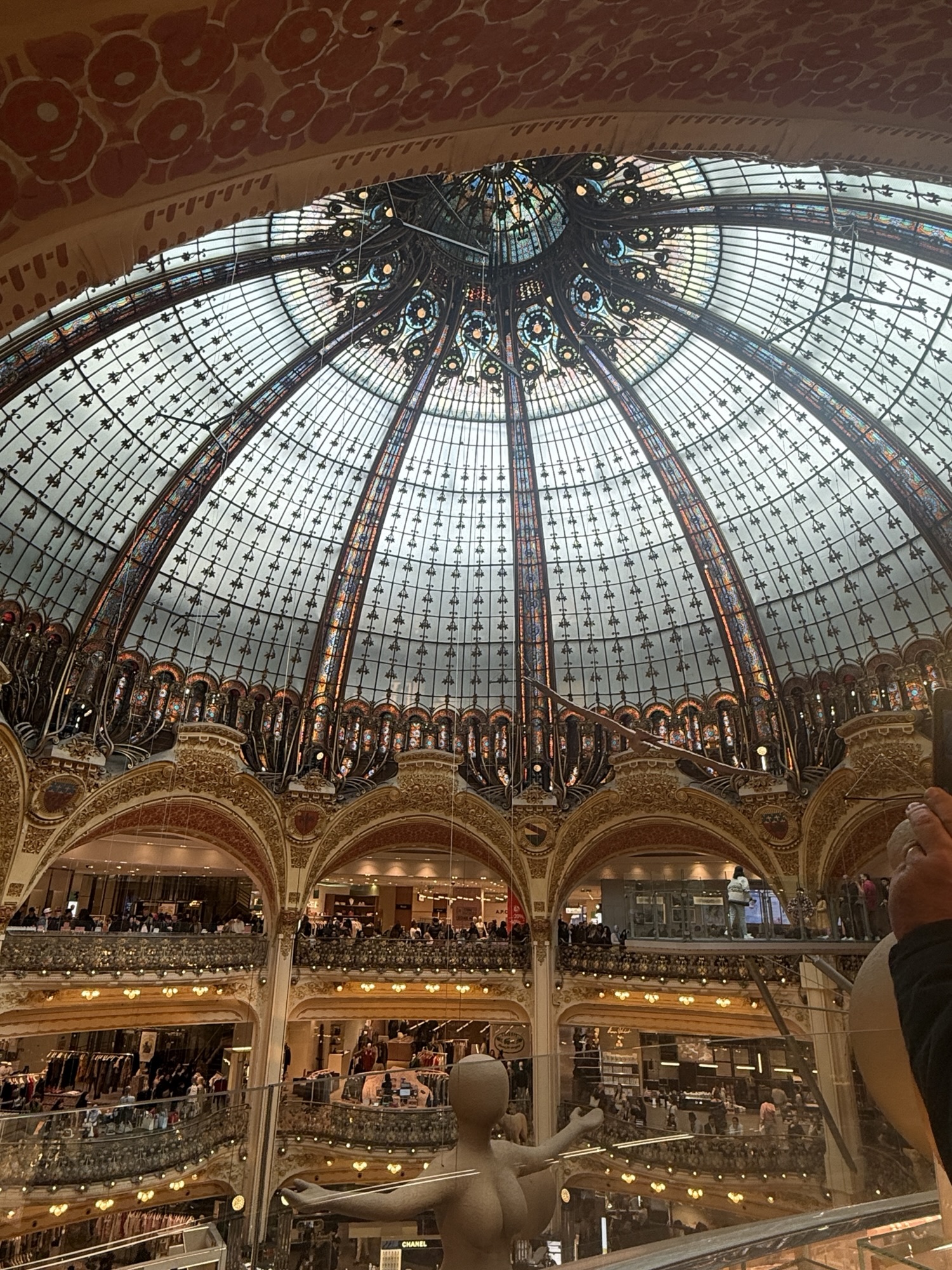 We walked to the Galleries Lafayette as Norm spotted people on their roof. This is the ceiling dome in the store!