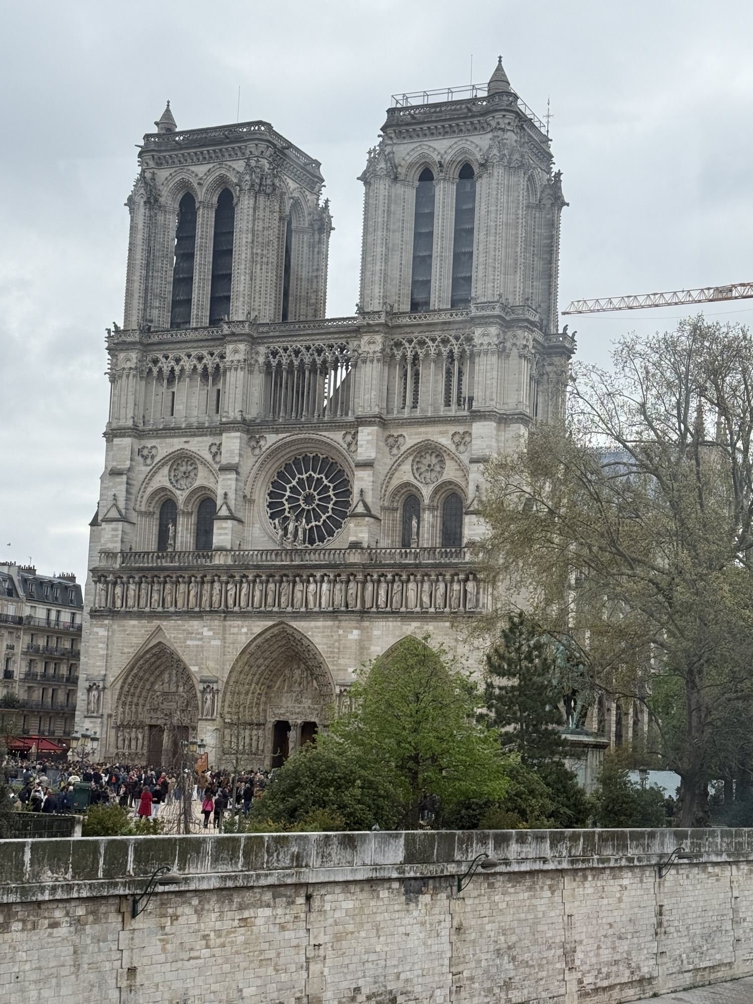 We were very lucky to find that our room was ready, so we could get organized, have breakfast and head out to our first “must do” sight, the renovated Notre Dame Cathedral. It was about a 20 minute walk from our hotel. The day was cloudy and cool so we really enjoyed the walk.