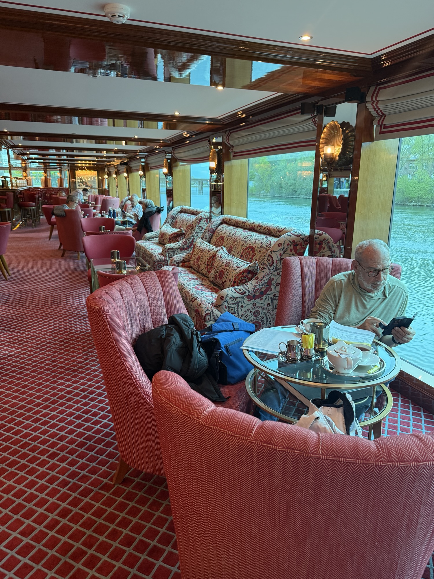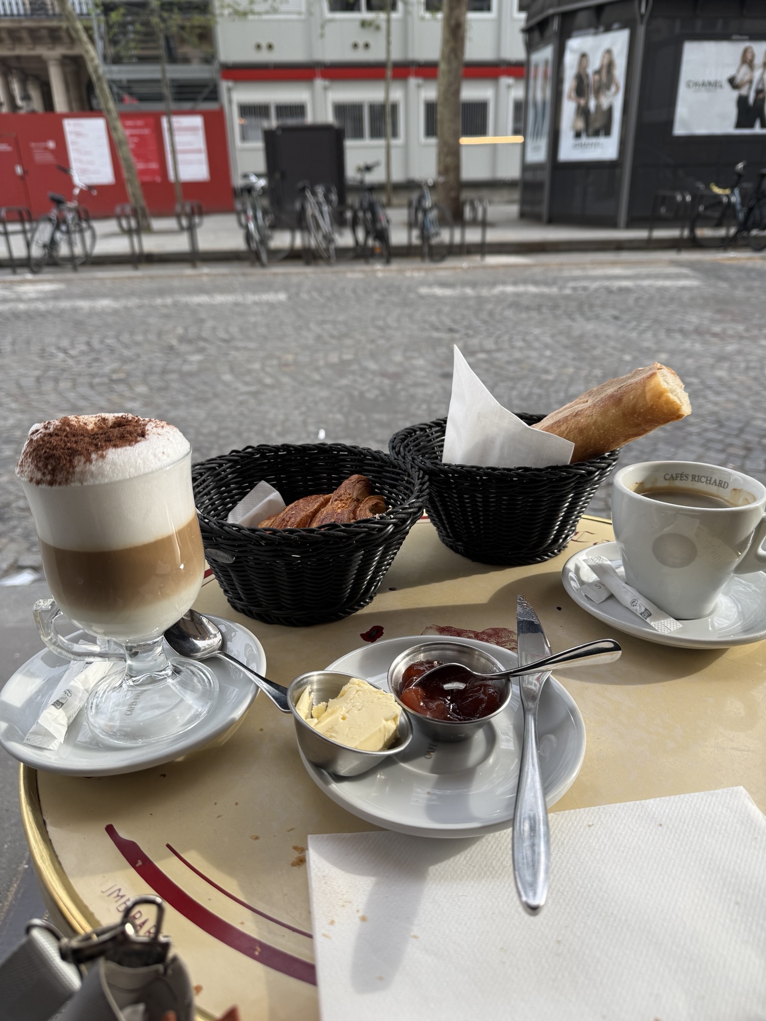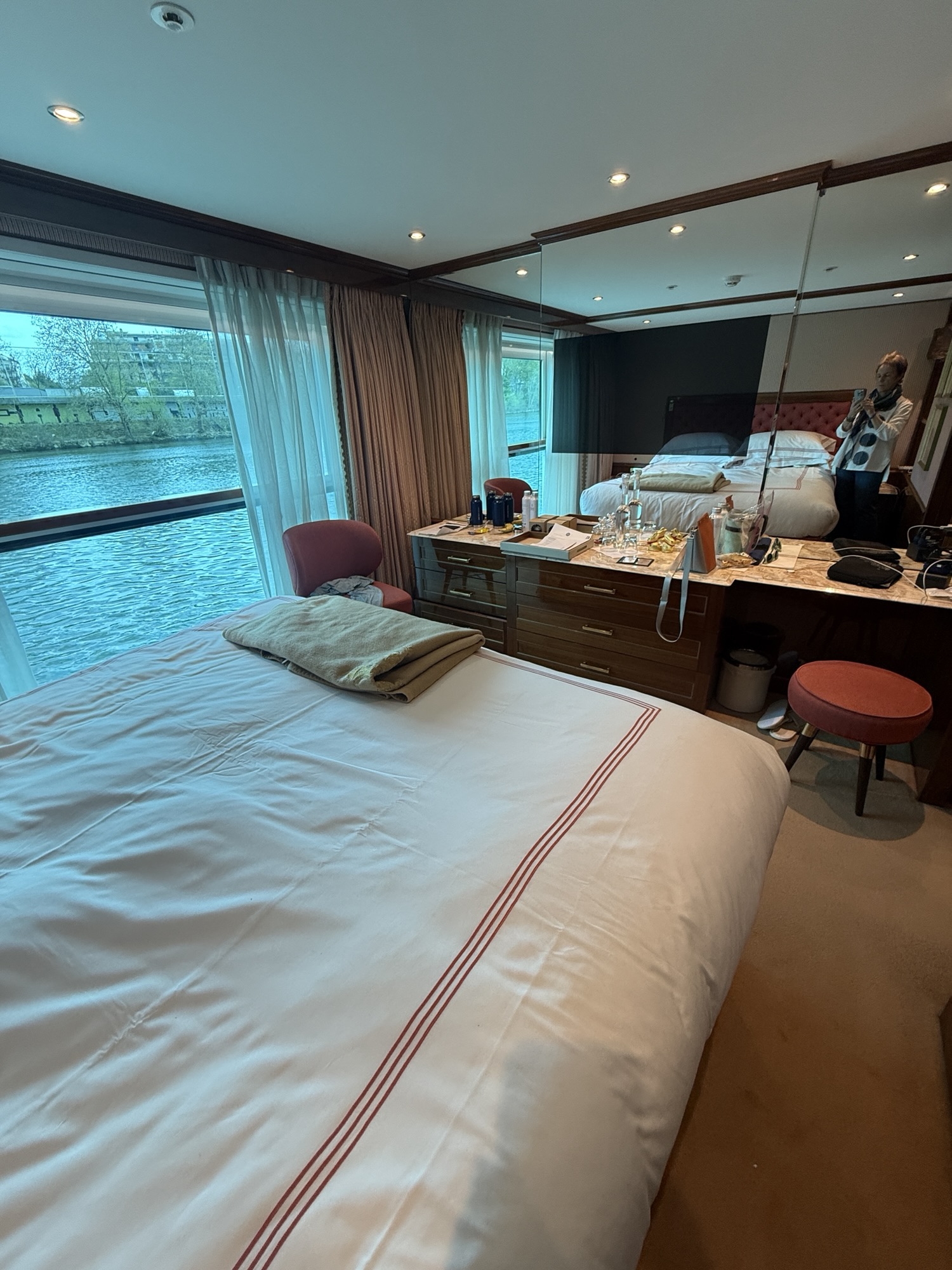 This morning, we started with a typical French breakfast at a sidewalk cafe. We then packed up, called an uber and made our way to the port to board our riverboat – the Uniworld S.S. Joie de Vivre.