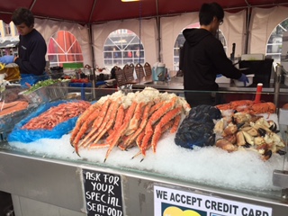 We took the hop on hop off bus (which had wifi by the way!) all around the city, then got off in the most historic area and also where the wonderful fish market is. You can pick your own crabs, lobster, or almost any other type of fish and they will cook it on the spot for you. Notice the huge pot of sauteed peppers to go with your dish.