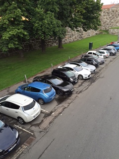This is one of the charging parking lots for the electric cars.  The owners also do not pay for parking or the tolls on the toll roads.  As I mentioned before, the government wants to encourage electric cars.