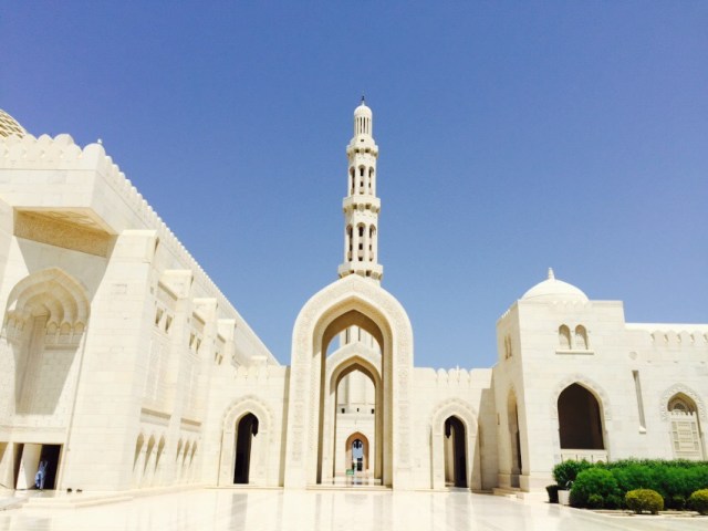 Muscat is the capital of Oman and its largest city. We visited the Sultan Qaboos Mosque which was completed in 2001. It holds 20,000 people in total. Women and men pray separately, the women’s section holds 700 and the much grander men’s section holds 8000 with the rest of the capacity in surrounding rooms. You must take your shoes off to enter.
