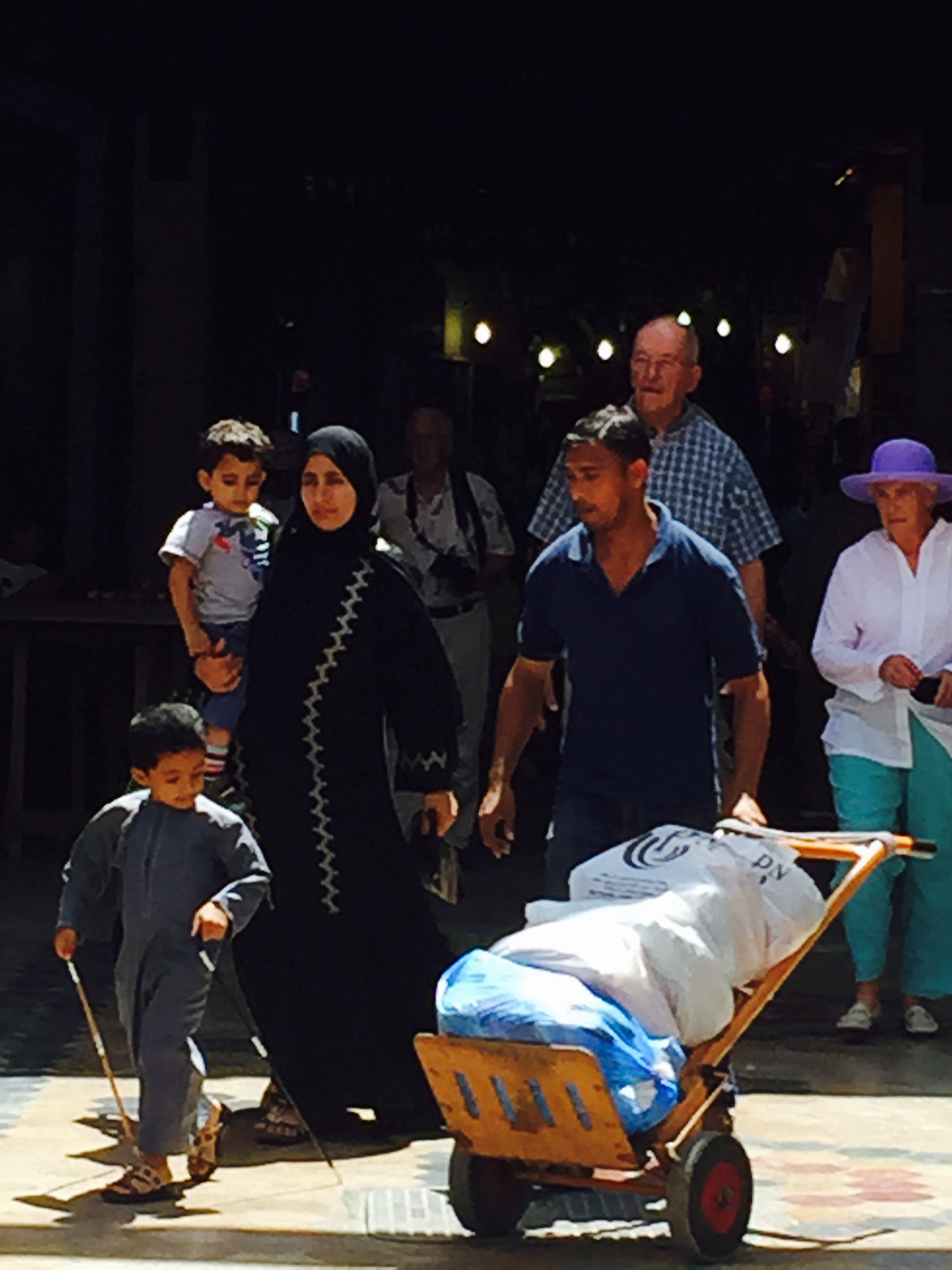 It was 101° today, not the best day to be so covered up, but cover I must! Not the men though. And of course there were 2 women who came with capris or short sleeve shirts in spite of repeated instructions, both written and verbal. The one with the capris got a loan of long socks from someone and the one with short sleeves had to wrap her arms in scarves. You just can’t enter the mosque otherwise, they are serious about this.
