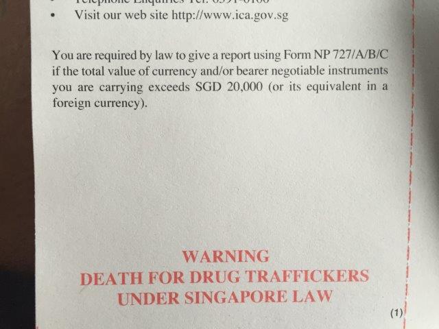 We gor our passports back for Singapore and had to fill out the arrival and departure cards.  If you have never been here (we spent 3 days several years ago), you may not know how strict their laws are.  Here is an example from our arrival card: