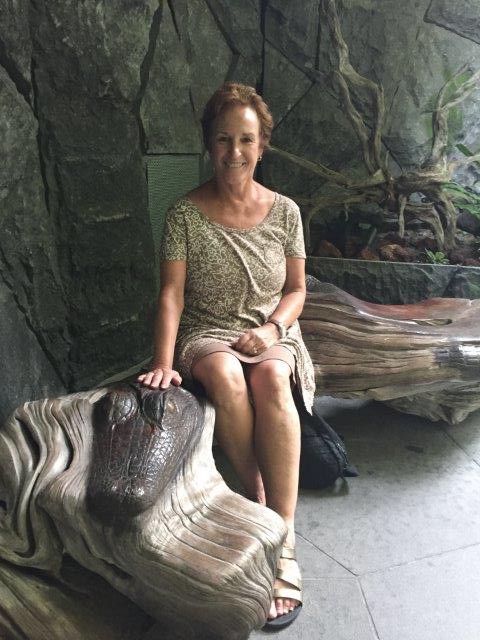 One of the many beautiful wood carvings found here. An alligator, the only kind I want to get close to!