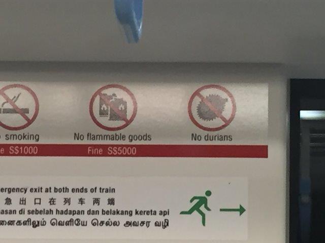 They do not allow these durian fruits on the subway, here’s a sign specific to that.  They say that the durian smells like limburger cheese.  We didn’t smell or taste any!