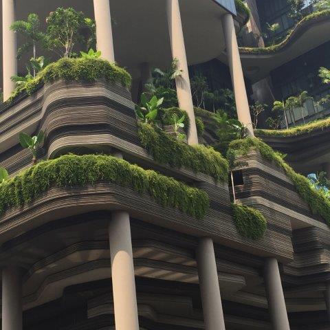 Many buildings have greenery incorporated into them