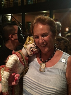 We were entertained by an angklung band and treated to a tour of the residence and beautiful jungle garden. The residence is made up of 6 Thai style teak houses.  We had wonderful drinks and food and were then treated to an award-winning Thai style puppet show.  After the show, they came to greet us!