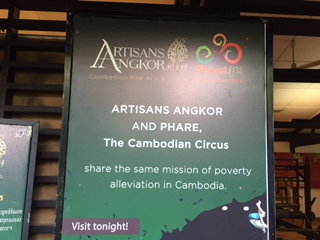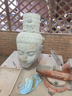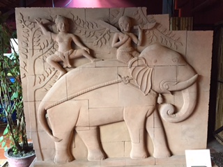 After a short flight of 1 1/2 hours, we were met by our guide for the trip, Sam Kim – he said it is his nickname and never told us his whole real name. We headed first to the Artisans Angkor Fine Arts and Crafts Center, a workshop where disabled children/teens (mostly deaf and mute) work on all kinds of carving, painting, weaving, lacquer work, etc. They are really good, and the work is amazing. In fact, some of the reproductions in the temples are made here. We made some purchases there and really enjoyed the shop and the mission it represents. It is supported by the European Union.
