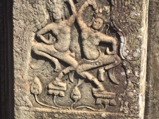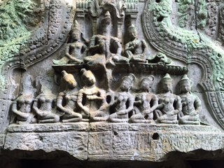 The first one was Angkor Thom for the Bayon Temple complex, Terrace of the Leper King and the Elephant Terrace. The elephant terrace is a sandstone wall covered with carved hunting scenes and three-hea