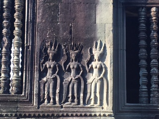 After lunch we visited Bantey Srey temple. This is known as the pink temple or women’s temple because of the carvings of the devatas carved into the pink colored sandstone. It is the only one not built by a monarch and was originally dedicated to the Hindu god, Shiva.