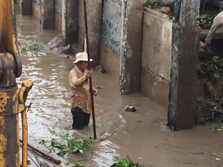 On the way to the port, our guide, Mr. Tuan, shared a lot of information about Vietnam. Rice is a huge product for them, they are second only to Thailand in rice exports. There are 100 different kinds of rice seed. Rice grows for 3 months and most farmers grow two crops a year, but in really rainy areas or seasons, like Cambodia, they have 3 crops. One of the societal problems is that after the rice is sold, the people have a lot of money. The men use it to drink, and our guide says it causes a lot of problems including death at young ages – 30’s and 40’s. In the country, you also see a lot of trash around, Mr. Tuan says that is due to lack of education. In the city, trash is picked up every day, but in the country, the people need to properly dispose of it and they often don’t do it.
