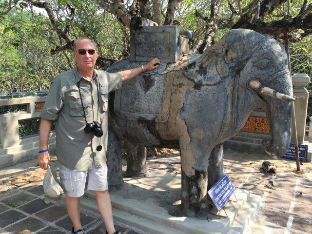 We went to the Tomb of Tu Duc, the empporer of Vietnam for more than 35 years. The grave is surrounded by a paviliou and temple and guarded by stone sculptures of elephants, horses and soldiers. Lots of restoration is going on here.