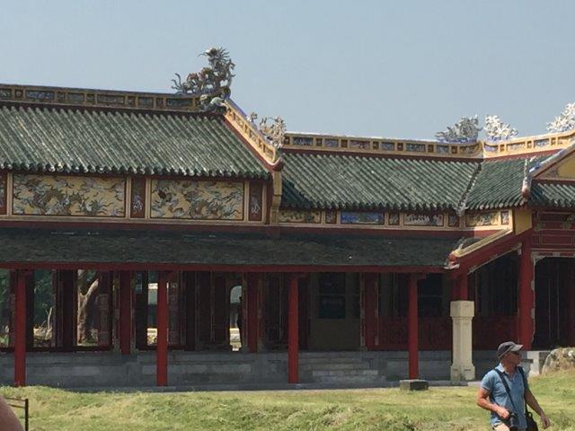 We traveled to Hue (pronounced hway) on a tour called Imperial Hue. Our guide was Quoc, which he says is pronounced like the sound a duck makes! He was great, His background was after university for 4 years as a history major, he taught in secondary school, but it was far from his home. So he went for a tourist course for 6 months and decided to be a tour guide. This history background makes him especially effective. He is married with 3 children and his wife is a lawyer. He says that lawyers don’t make much money in Vietnam. Doctors earn about $600/month and bank clerks about $800. Lawyers are not used when you buy a house or get a divorce, so there is little that they can do. A company CEO may make $3000/month and they are considered rich here.