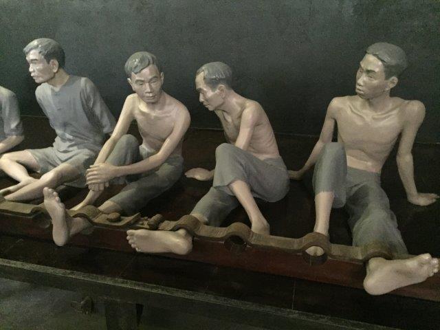 A walk through the “Hanoi Hilton”, the Hoa Lo Prison where captured American pilots were held during the Vietnam War. We saw where John McCain and Douglas B. Peterson, ex-ambassador to Vietnam, were imprisoned after they were shot down. This prison was a notorious French prison back in the day, and the guillotine still stands in the museum