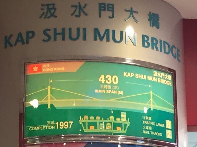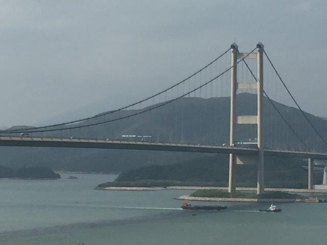 Interesting that they built the bridges with two three lane expressways on the upper deck and two railway tracks (electric trains), on the lower deck. In addition, there are two sheltered single lanes on the lower deck for traffic diversion during high winds or emergencies. It is the longest cable double layer bridge in the world. We drove over the Tsing Ma Bridge and stopped at the Tsing Yi lookout.
