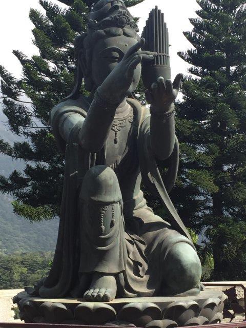 Then our tour took us to the Po Lin Monastery, located at an altitude of 1700 feet on the Ngong Ping Plateau. It was opened in 1970 and the main attraction is the 250 ton, 102 foot high Great Bronze Buddha, the largest seated Buddha statue in Asia. The pedestal of the statue is a three story exhibition hall embellished with Buddhist figures and scriptures. We weren’t allowed to take pictures inside, but here are some of the statues on the grounds and around the Buddha.