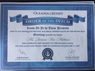 When you go through the Panama Canal, you get this “Order of the Ditch” from the Captain and the general manager.