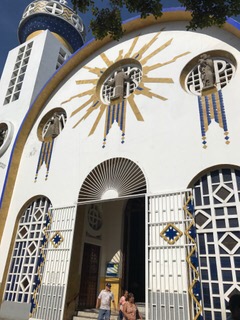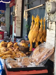 After that, we ventured out for a walk to the Zocalo square and markets. Markets are one of my favorite places to visit and this one was no exception. Mostly local people were here buying everything from chickens (cooked and uncooked) to fruits and vegetables to all kinds of clothing and electronics. The Nuestra Senora de la Soledad cathedral is on the north end of the square and has uniquely shaped blue onion shaped domes and Byzantine towers. It was originally constructed as a movie set but was later adapted into a church.