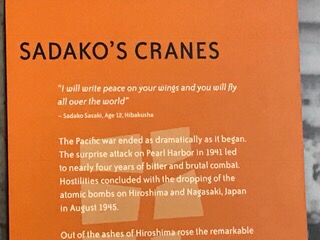 These cranes were made by a 12 year old girl to commemorate peace after the atomic bomb.  They became a worldwide symbol of peace.