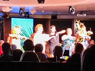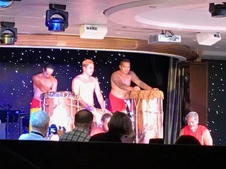 After we got back to the ship, there was a wonderful presentation by local dancers and drummers. We were so lucky to see this, it was because we came late and stayed late. Normally this show is only available to those who are in port overnight. They were really terrific. It was hard to get shots without people in the front of the stage so you don’t really get the effect but it gives you an idea. One of the pictures shows me up there dancing, they picked several of us out of the audience! I couldn’t make the picture any lighter. There are friends on board who apparently have video to share with me. I doubt I can upload it though, maybe when we are on land!