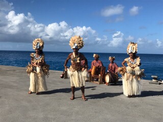 Here is the view when we arrived into the harbor. It is also a tender port. On the dock we were greated by dancers.