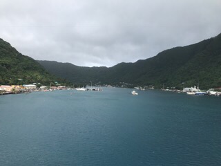 The time zones are interesting. Here in American Samoa, we are one hour earlier than Hawaii ( 6 hours earlier than PA) and in nearby Samoa, it is one full day earlier!. We don’t have a February 11 on the ship, as we will be crossing the international dateline and we go right from today, February 10, to February 12. Very confusing to say the least. Our son Mark said he would let us know what we miss on Feb 11!. Always the sense of humor….