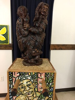 We purchased a piece of Samoan Tapa cloth, made from the bark of the paper mulberry tree (u’a) and decorated with native dyes. No two tapa paintings are exactly alike. They were originally used to divide living spaces and for ground covering during special ceremonies.