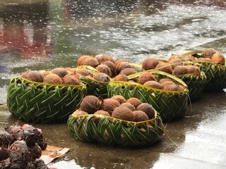 The other piece is a painting on a palm tree husk. Again, quite hard to see in the picture but intricate and very beautiful. We have it hanging on our wall.