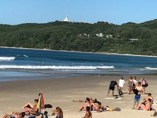 We checked into out hotel, the Byron Bay Beach hotel, then went for a 6 mile (and 52 flights) walk up to the Cape Byron lighthouse and the most easterly point in Australia. Absolutely spectacular views from every angle and the beach is lined with forests. We walked along the beach then up to the lighthouse.