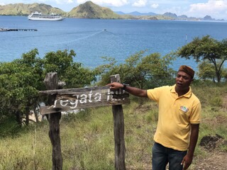 We arrived at our anchor spot in beautiful Komodo by 11 AM and we had booked a tour through cruise critic colleagues Erin and Mui. A lot of work goes into planning these tours, and there were 33 people on this one. It took a while for the authorities to clear the ship so that we could disembark on the tenders, but Erin was first in line to get all of our tender tickets, assuring that we would be on the first tender to the island.
