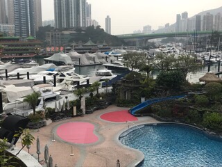 I got done just in time to change for the Around the World special event held at the Aberdeen Marina Club. This exclusive club is located on the southern edge of Hong Kong Island and is one of the city’s premier destinations for fine dining. It costs $500,000 to join and $300/month not including your dining and a yacht spot. It was truly beautiful – there was a deck overlooking the tropical pool and marina and the ballroom had stunning chandeliers.