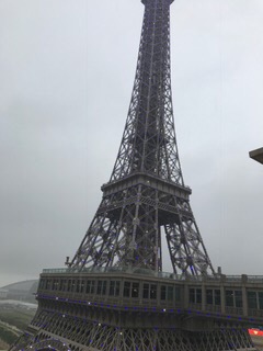 You can see the tower at the Venetian picture just how much it was raining! We had lunch at the Parisian but did not go up in the tower because visibility was so poor – even though we had a free entrance ticket.