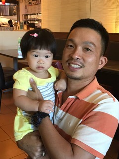 Then we had lunch – one order of prawn pad thai and one pork rad na with iced tea for $8.36 US. This dad and his adorable daughter stopped by and I just had to have a picure – he told his daughter, in English “tourists” and he wanted to know where we were from. There were no non Asian people in the restaurant so I guess we stood out.