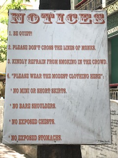 Women were not allowed to touch or approach the Buddha here. The men were putting gold leaf on the Buddha and they had a camera with video to show the women! And like other temples, arms and knees had to be covered and no shoes or socks could be worn in the temple.