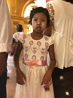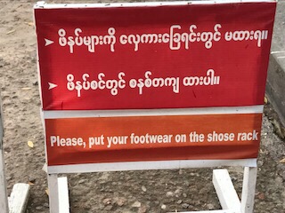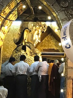10 people from the ship were in the group going to Mandalay. On our last cruise we went to Bagan. This time there were 40 people going there so we felt lucky to have such a small group.We were met bright and early by our guide, Moh Moh. The trip to the Yangon airport took 90 minutes and Moh Moh gave us some information about Myanmar, formerly Burma. This is primarily a Buddhist country and all males are required to spend some time in a monastery. It can be as little as a week, but most stay longer. People who are very poor often send their children to live there and many of these children become monks. All of the food is donated to the monks – they go door to door every day -and they are only allowed breakfast and lunch, no food after 12 noon.