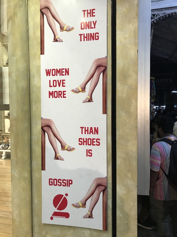 We also visited the night market which was the same market we went to during the day! It was busier, if you can believe it.  Friendly people but no time to bargain and buy because we were on our way to a Bollywood movie at the Regal Cinema Hall, Bombay’s first Art Deco theater.  We saw a movie, Noor, which was in “Hinglish”, a combination of Hindi and English.  Very interesting and it was enough for us to understand the story.  And they served us popcorn!  We didn’t get to finish the movie, though, because the port gates close at 11 PM and we had one more stop to make for drinks at a Mumbai bar. We intend to download the movie and finish it when back in the US so we can find out what happens.