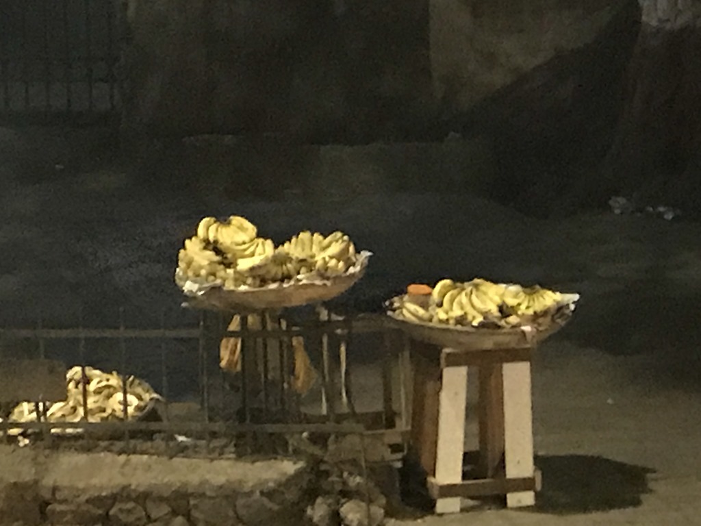 On the way back to the ship, we saw some of the crowds on the streets and the night vendors.  Limeade is very popular and they make it up fresh. And of course there are bananas everywhere.