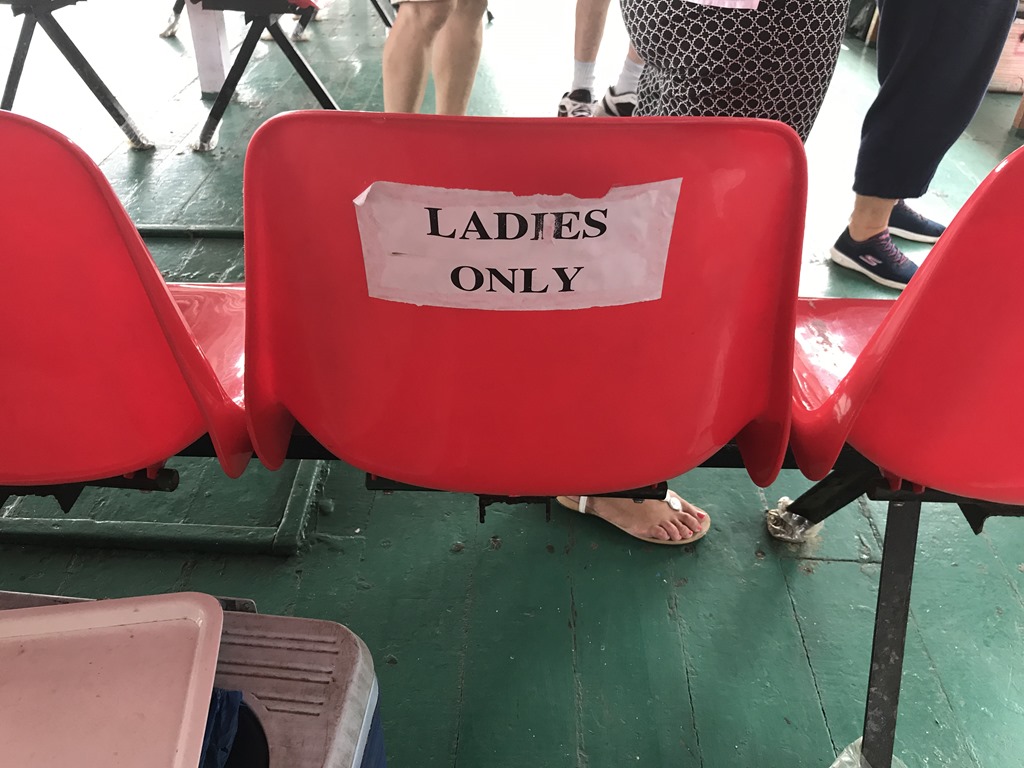 No one seemed to pay attention to this sign on the boat, and Sudha didn’t even know about it! We sat on the upper level of the boat and had a nice breeze all the way there.  Part way, we were stopped by a police boat (who knows why) but we were afraid to take any pictures.