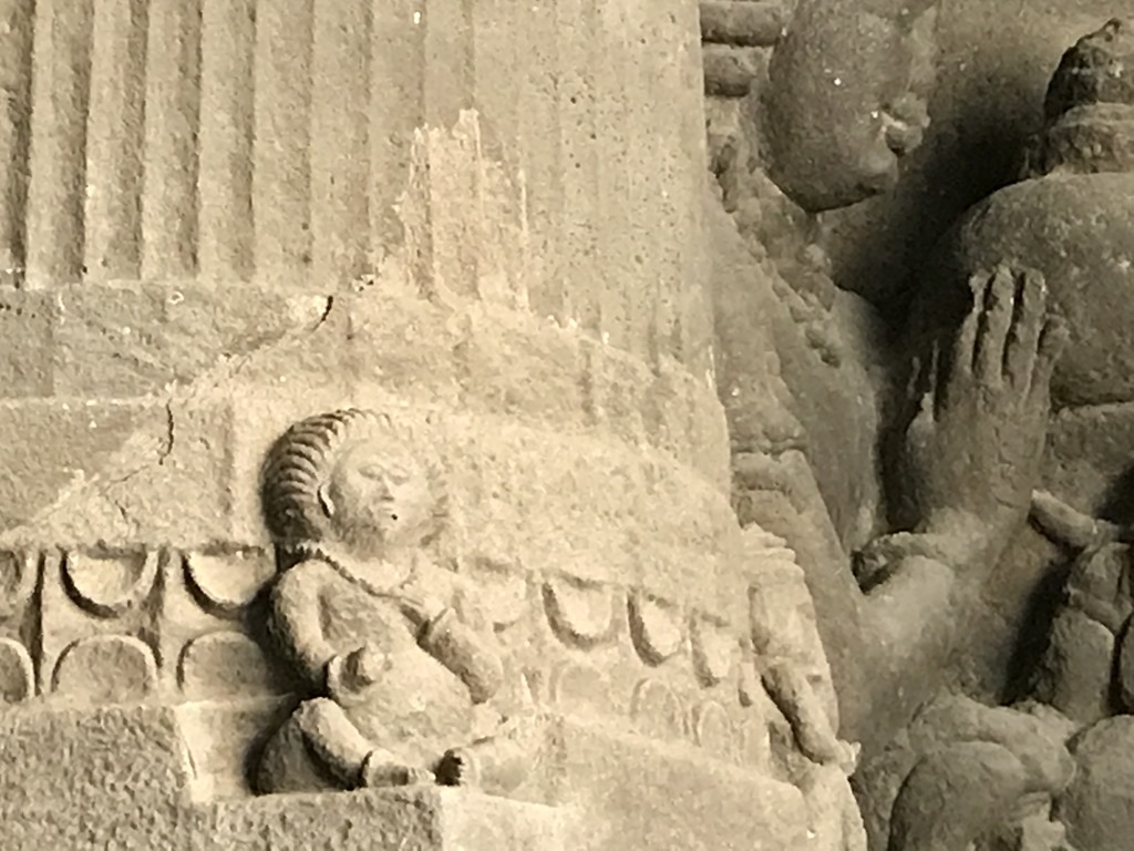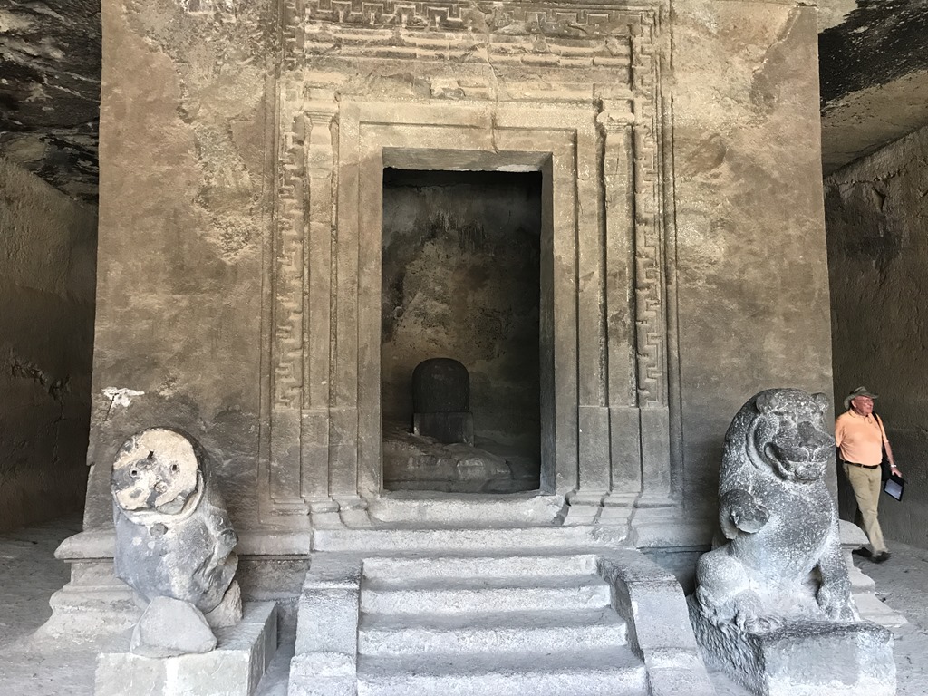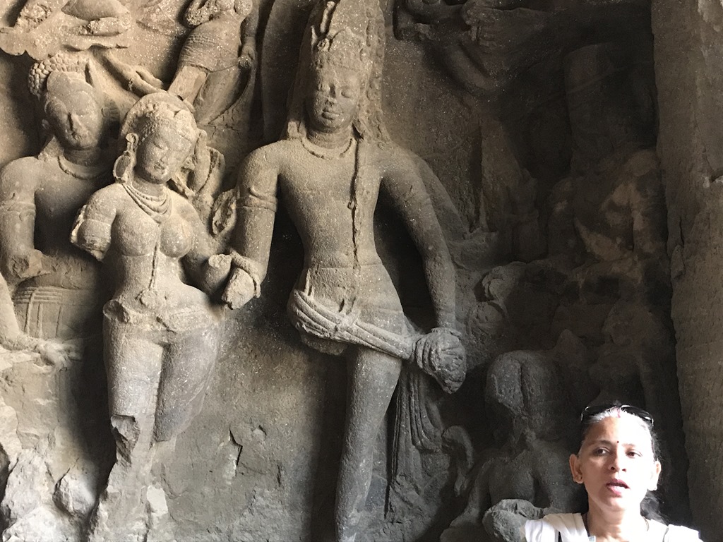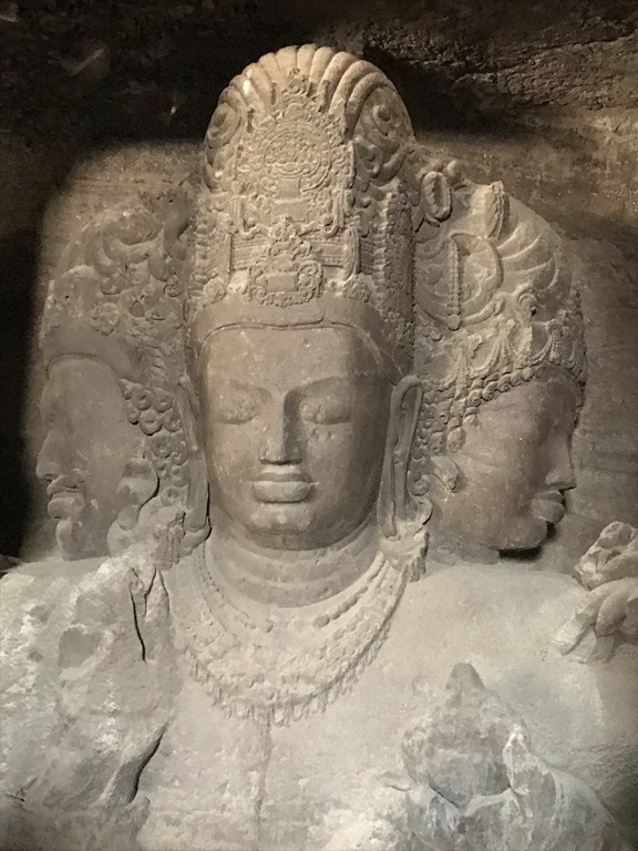 The cave is carved out of solid basalt rock and represents Mount Kailash, the heavenly mountain residence of Lord Shiva.  They were carved starting in the 5th century! The cave complex is a collection of shrines, courtyards and porticos filled with stone sculptures and reliefs of Hindu Gods and Goddesses.  The Portuguese renamed the island Elephanta after discovering a large stone elephant statue near the shore.  Unfortunately many of the sculptures inside were damaged by the Portuguese who took potshots at the Hindu Gods with their rifles but what remains is quite amazing.  It was designated a World Heritage Site in 1987.  Sudha took us around to each of the huge panels and described their meaning.  She says that she sees Hinduism as not a religion but as a way of life and each of the panels does have a story to tell.