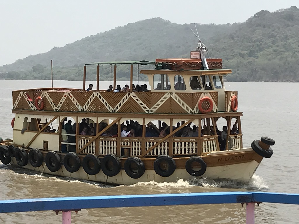 We arrived on the island to see a very long pier which had a train to take you to the island.  But the train wasn’t working. There are 2000 people living on the island in 3 villages.  There is no electricity on the island and they are dependent on Mumbai for everything.  During the monsoon season no boats can get there so they depend on dried food.
