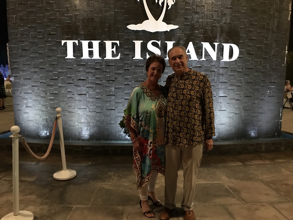 We came back to the ship to have a shower and get ready for our evening Around the World event on the World Islands – specifically the one named Lebanon. We had to take a bus to the waterfront then a ferry (very futuristic) to the Island.  This is an artificial archipelago of 300 small islands constructed in the rough shape of a world map, located in the waters of the Persian Gulf, 4.0 kilometres (2.5 mi) off the coast of Dubai.  The islands can only be reached by boat or helicopter and were intended to allow rich people say they owned a piece of the “world”.  As it turns out, they ran out of money, and while some islands are privately owned, most of them are just uninhabited.  Lebanon is the only one currently open to the public.