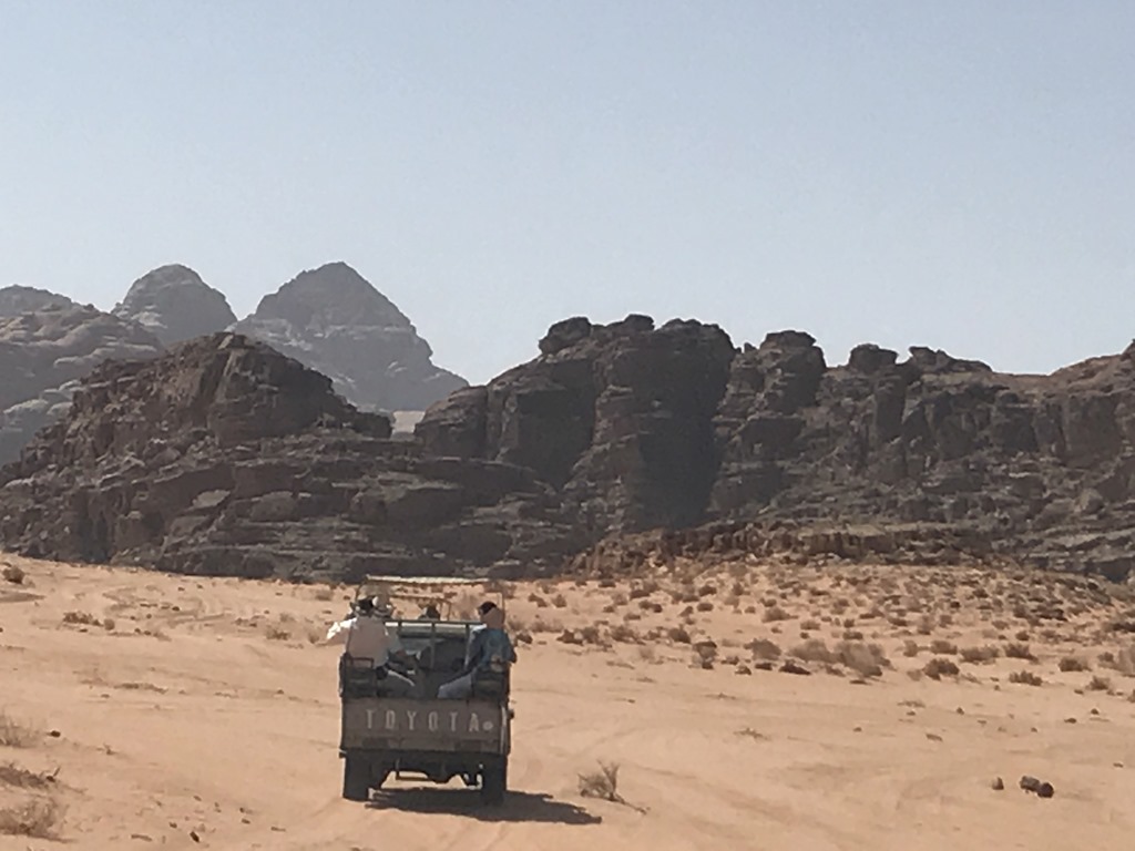 It took about an hour to drive to the entrance to Wadi Rum where we met our Bedouin drivers in the open trucks.