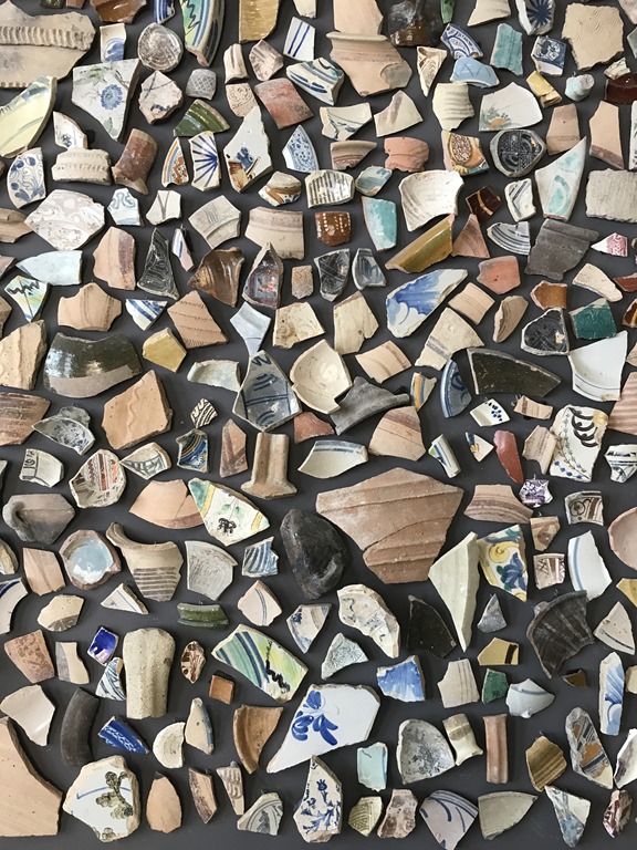 This is a wall in the small museum area with parts of old pottery. And Suzanne, our artist in residence, is fighting another day! What a lovely location – we could have stayed there all day.
