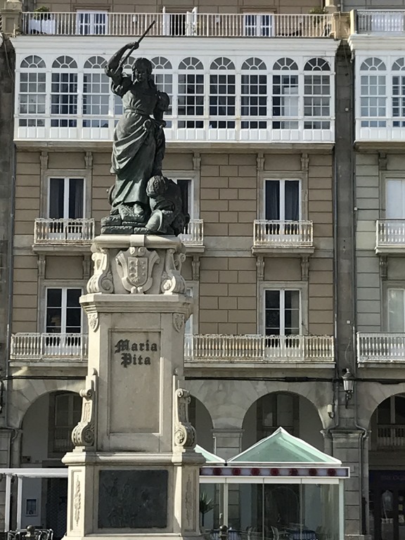 We set out to Maria Pita Square, a short walk from the port. This is La Coruna’s greatest public plaza. It is named for the heroine who rallied the townspeople against English invaders in 1589. It features the Palacio Municipal, an ornately designed town hall and council building, beautiful building facades in all directions as well as a statue of the heroine.