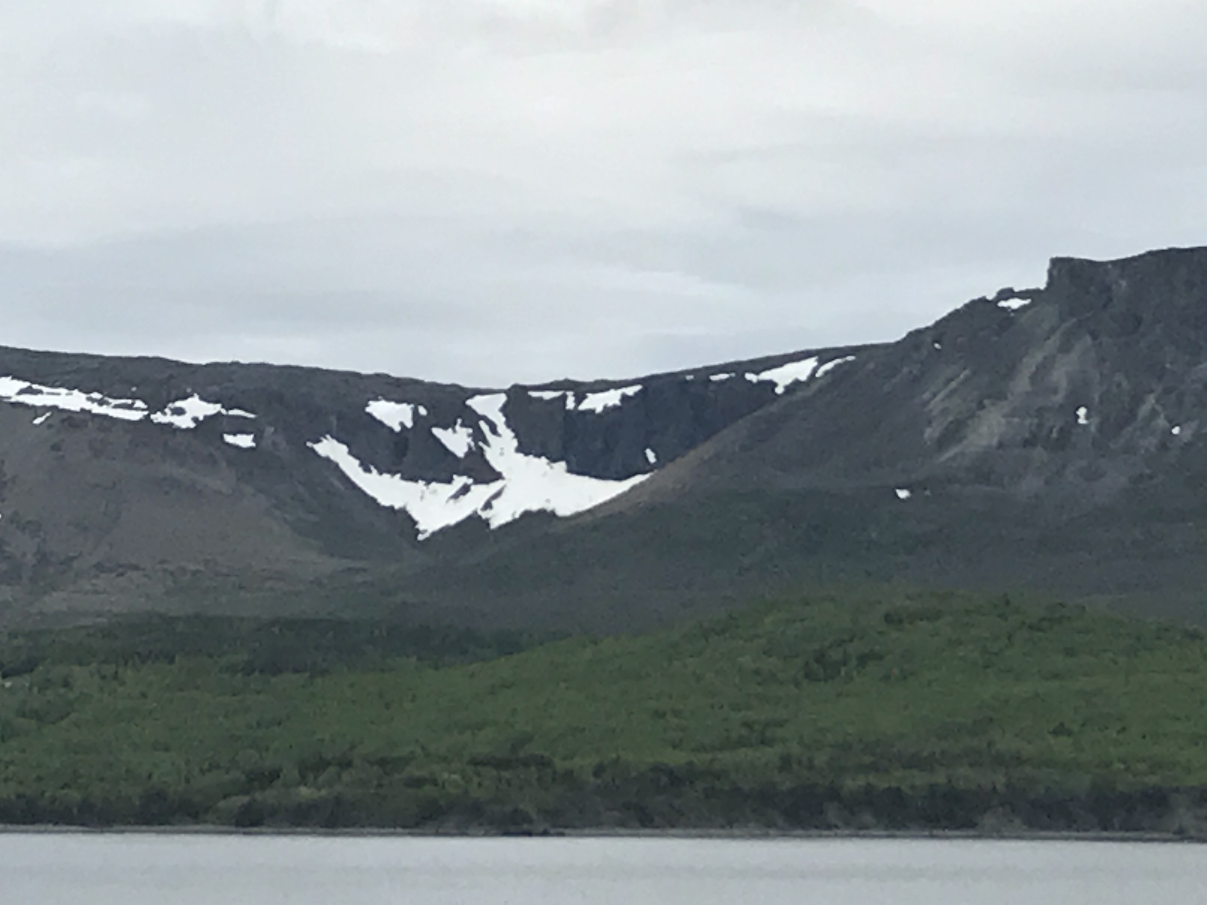 Last year while we were here in Cornerbrook we did a long hike into the beautiful mountains here. As we arrived, we could see the mountains with snow at the top.