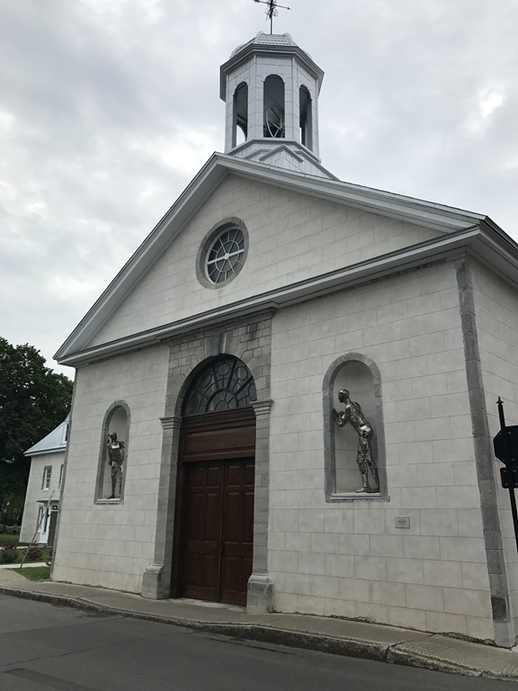 Trois Rivieres is located between Montreal and Quebec City. We were here on our last trip and just loved this town. I was looking forward to a shop that is an artist’s collective where I bought a very unique and lovely necklace, so that is where our walk took us first. The sign on the door said ferme on lundi (closed on Monday) and I was so disappointed. Anyway we continued our walk, visited the beautiful church and did some wifi in the library with its fast service. We both thought it would be foolish for a shop in a small town like this to remain closed when a ship is in port so we went back to the shop and it was indeed open!