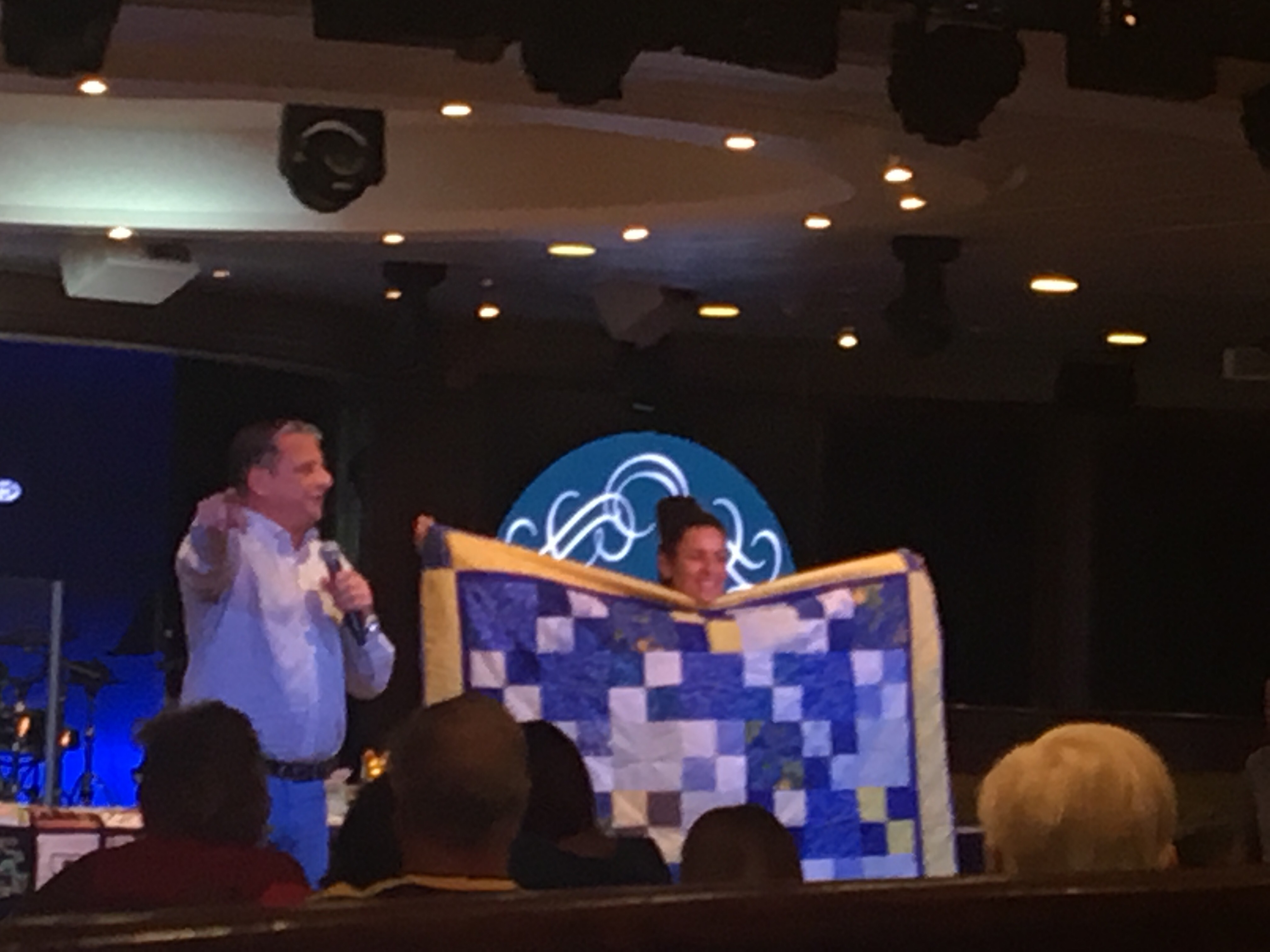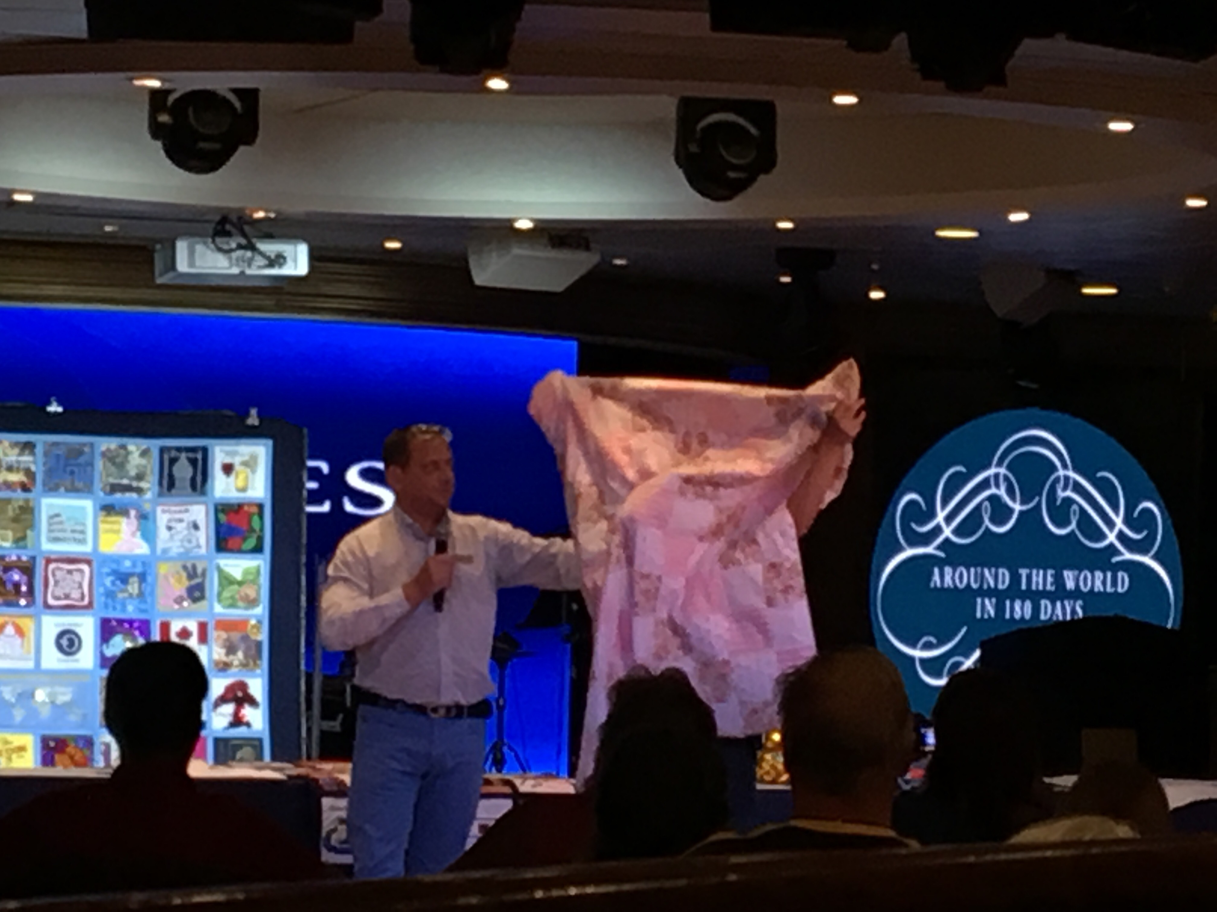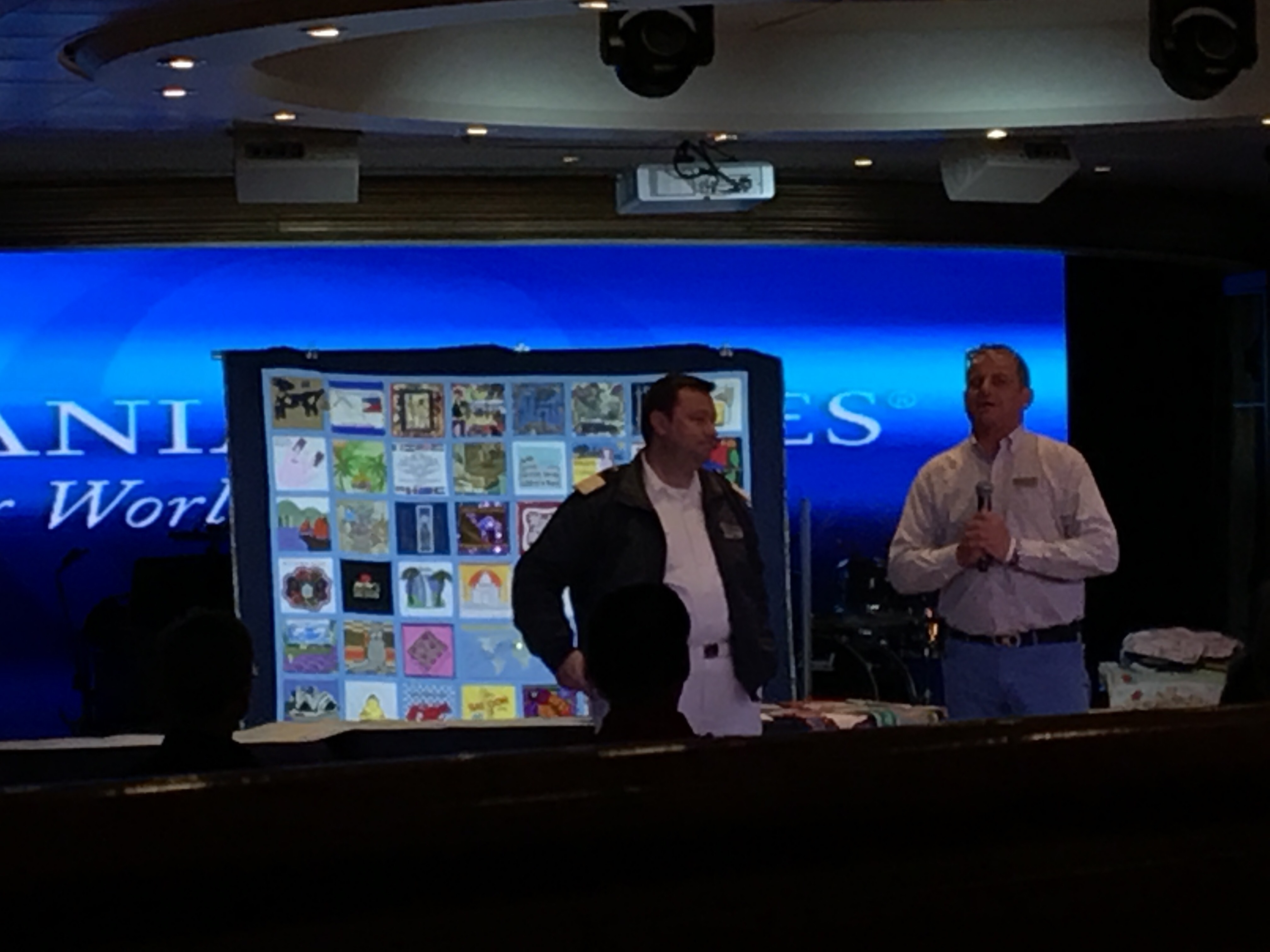 The QUILT raffle was held last night, and over $6000 was raised for the crew welfare fund! I didn’t win the quilt.. But am happy to be part of it. There will be a book about the project and I will purchase that. There was also a live auction of several other quilts, ships flag, navigation charts, the ability to be cruise director for a day, etc.