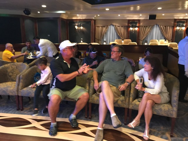 Our last sea day, July 5, we had a mimosa party and there were hugs and tears as Ray read some memories some of us submitted and we got to see the video that fellow passenger Rob Fromm created for us.  Will share that with everyone when we get home. Here are some photos of our celebrations.