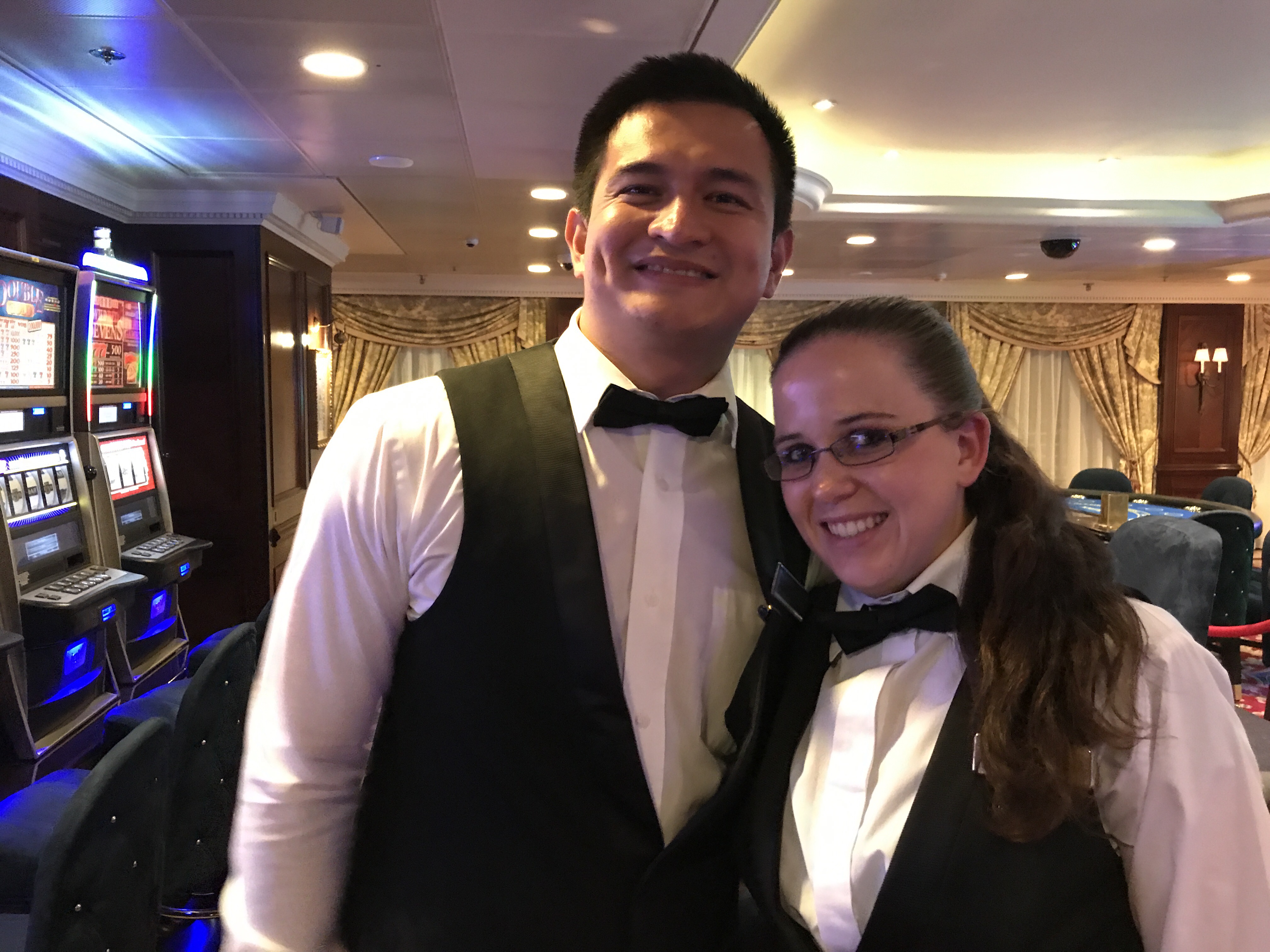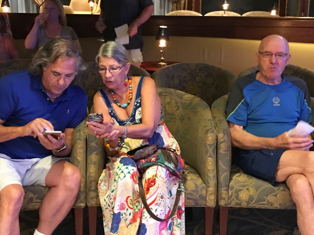 We had a lot of fun in the last 2 days of the cruise! After we left Charleston, we had a sailaway party on the deck and a July 4 barbecue.  Good music, good friends and a surprise ritual that Ray initiated last cruise (and I didn’t know about) that at the end of the world cruise the “worldies” as he calls them, jump into the pool with their clothes on. Ray went first, and of course I had to do it.  Not Norm, though, he took the pictures. I am in the back in the red shirt! This didn’t happen on the last trip, I guess because we didn’t have Ray as our cruise director.  Or maybe because we returned in January that time!